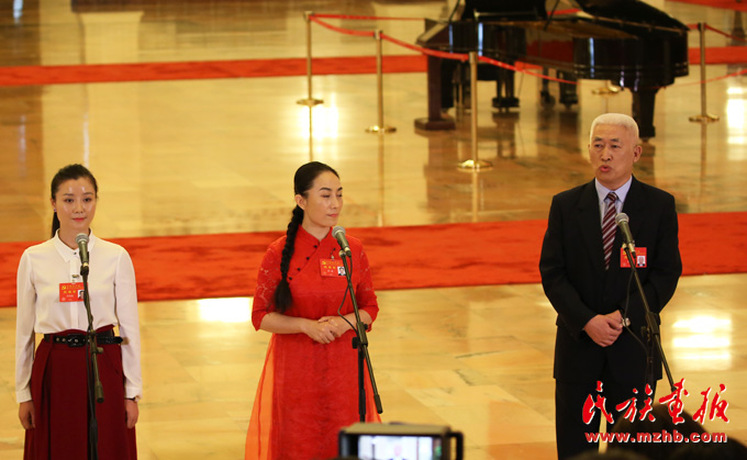 中國共產(chǎn)黨第十九次全國代表大會代表徐俊在北京人民大會堂接受采訪時(shí)發(fā)言( 滕俊 攝影)