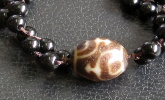 藏族同胞過去認為,九眼石天珠的內(nèi)部結構具有天然宇宙強烈的磁場能量,造成天珠有不可思議的感應。所以天珠也成了藏族同胞最貴重的護身符,人們相信,誠心供養(yǎng)佩戴天珠可以消除業(yè)障、獲得福報、防止中風及免除被外道邪魔傷害,又可增強體力,增加財富等等。