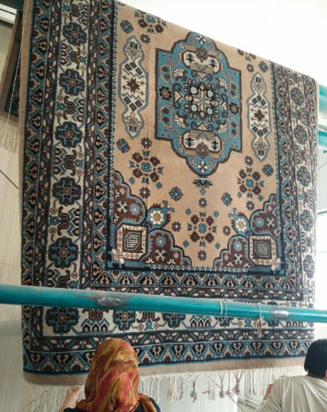 維吾爾族婦女制作新疆地毯(圖片來自淘寶網(wǎng))