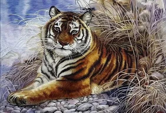 湘繡的圖案借鑒了中國畫的長(zhǎng)處,所繡內(nèi)容多為山水、人物、走獸等,尤其是湘繡的獅、虎題材,形象逼真,栩栩如生。