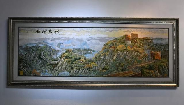 《萬(wàn)里長(zhǎng)城》是金文集數(shù)年之功完成的云錦巨制。觀者立于高山之巔,長(zhǎng)城從峰巒疊嶂間伸向遠(yuǎn)方,更有一旁朝霞相伴,使畫面錯(cuò)落有致,層次豐富。
