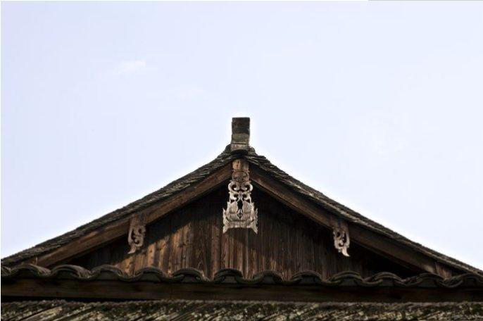隨著時間流轉(zhuǎn),懸魚在匠人時代里閃轉(zhuǎn)騰挪,歷經(jīng)了由簡到繁的造型征途,也從功能構(gòu)件升華為裝飾構(gòu)件。同舊時的其他建筑構(gòu)件一樣,懸魚在實際功用與藝術(shù)創(chuàng)造間轉(zhuǎn)徙。因此,它最先考慮了對木結(jié)構(gòu)的保護,之后才生出裝飾作用等枝蔓。懸魚覆蓋在博風(fēng)板合角處的罅隙位置,不僅保護了合角處不受雨雪侵襲,同時可以美化接縫。懸掛后,也從結(jié)構(gòu)上起到了穩(wěn)定博風(fēng)板的作用,同時還庇護了檁條端頭,有效地防止了木制建筑過早斑駁。時至今日,懸魚已然成為傳統(tǒng)建筑中結(jié)構(gòu)性與裝飾性完美融合的一種構(gòu)件,更是祖先智慧的一種體現(xiàn)。