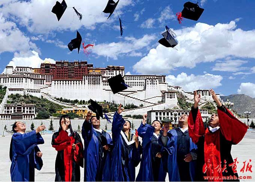 西藏已有普通本??茖W校7所。西藏大學一批被授予博士、碩士學位的學生在布達拉宮廣場慶祝畢業(yè)