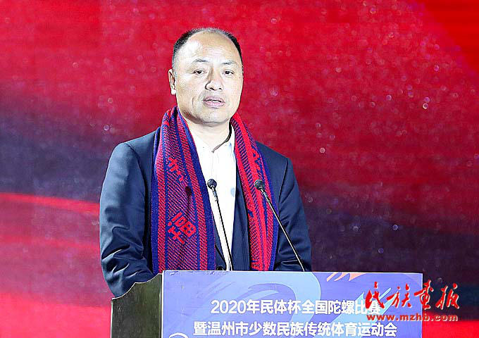 為發(fā)展民族傳統(tǒng)文化體育,促進民族交往交流交融,推進民族團結(jié)進步事業(yè),不斷鑄牢中華民族共同體意識,11月27日,2020“民體杯”全國陀螺比賽暨溫州市少數(shù)民族傳統(tǒng)體育運動會在浙江省溫州市鹿城區(qū)白鹿洲公園隆重開幕。浙江省委常委、溫州市委書記陳偉俊,國家民委監(jiān)督檢查司司長隋青,浙江省民宗委副主任鐘新章,溫州市委常委、統(tǒng)戰(zhàn)部部長施艾珠,市委常委、秘書長王軍,市人大常委會副主任張洪國,市人民政府副市長陳應許,市政協(xié)副主席諸葛啟釧等領導出席開幕式,浙江省、市、縣民族工作相關單位負責人及裁判員、教練員、運動員代表600余人參加了開幕式。