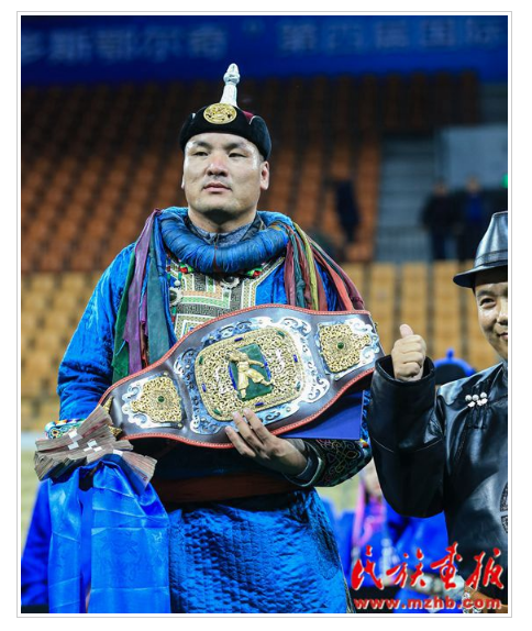 “鄂爾多斯鄂爾奇”第四屆國(guó)際蒙古搏克金腰帶爭(zhēng)霸賽冠軍得主查干扎那