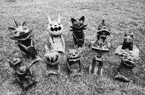 吳松懿介紹,因地區(qū)不同,瓦貓的形象有所區(qū)別。有人總結(jié),呈貢瓦貓像天真的孩子,玉溪瓦貓像留須的巫師,而鶴慶的瓦貓則造型夸張,眼睛外鼓,耳朵直豎,咧著大嘴,露出尖銳的牙齒,看上去很兇。