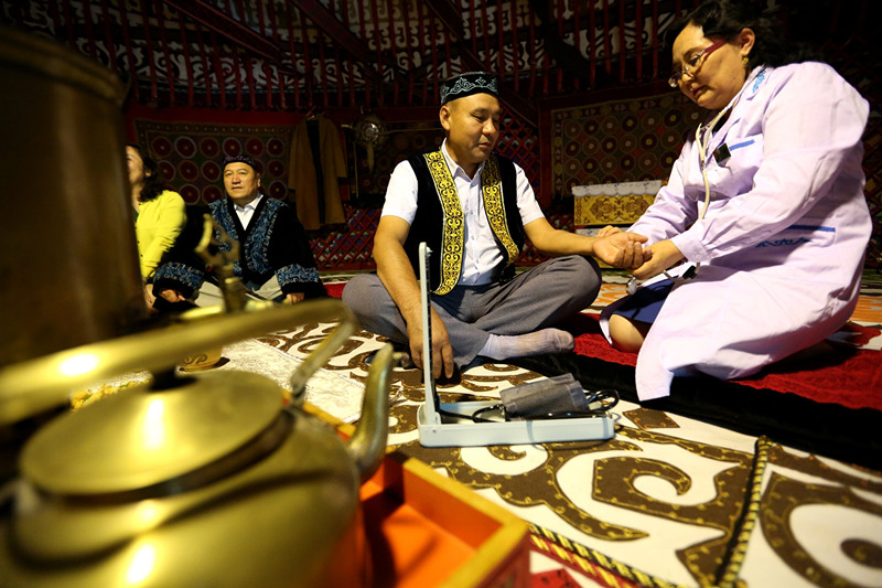 新疆阿勒泰哈薩克醫(yī)醫(yī)院醫(yī)生庫力木汗?托留汗在巡診