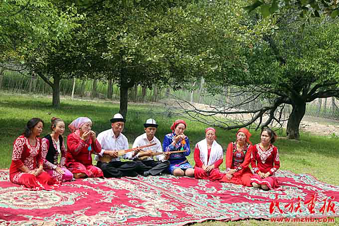 據(jù)色帕巴依鄉(xiāng)黨委委員阿依木古麗·艾山卡德介紹,該鄉(xiāng)在鄉(xiāng)中心小學(xué)專門開設(shè)課程教學(xué)生學(xué)彈庫姆孜琴,并積極舉辦“我為庫姆孜代言”活動,積極培養(yǎng)庫姆孜傳承人。此外,鄉(xiāng)里還專門組建有庫姆孜彈唱隊?!拔覀兝冒偃瘴幕瘡V場和日常的演出走村串巷,積極參加縣宣傳部開展的各項文體活動。今年2月開展的群眾大會,把庫姆孜音樂重新填詞,配合惠民政策宣傳,將傳播民族文化與群眾思想政治工作相結(jié)合?!蓖瑯?,在烏恰縣吾合沙魯鄉(xiāng)恰提村,當?shù)伛v村工作隊積極組織20名返鄉(xiāng)學(xué)生開辦“庫姆孜彈唱文藝培訓(xùn)班”,廣泛調(diào)動返鄉(xiāng)大學(xué)生加入到文化傳承的行列中。