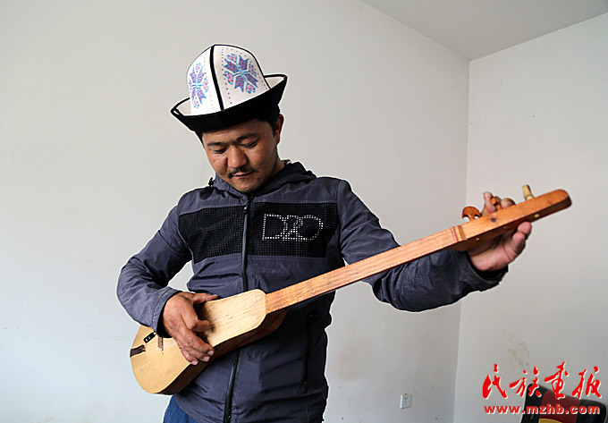 走進新疆克孜勒蘇柯爾克孜自治州阿合奇縣色帕巴依鄉(xiāng)色帕巴依村,一排排房屋整齊有序,沿路花壇里開著叫不上名的花,藍天映照下,顏色格外鮮艷。走進一間普通民居,一個柯爾克孜小伙兒正埋頭打磨著一把木質(zhì)樂器,這正是柯爾克孜族的傳統(tǒng)樂器——庫姆孜。房間里擺著一溜兒木質(zhì)雕刻的半成品。