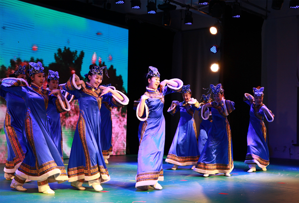 2016年8月10日晚,在哈爾濱防洪紀(jì)念塔廣場,獨(dú)具魅力的達(dá)斡爾族音樂響徹上空,近萬名國內(nèi)外觀眾聚集在這里,駐足觀看第33屆中國哈爾濱之夏音樂會“浪漫哈爾濱市民音樂嘉年華”系列文化活動之《魅力達(dá)斡爾》專場文藝演出。莫旗烏蘭牧騎的這臺民族歌舞晚會給“哈夏”帶來了異樣的震撼。晚會以群舞《亙古雄風(fēng)》序出整臺節(jié)目的情境。先以薩滿為基礎(chǔ),輔以現(xiàn)代敘事的鷹舞,追溯達(dá)斡爾族民族英雄的祖先和起源?!秮児判埏L(fēng)》令觀眾熱血沸騰,掌聲雷動。