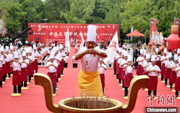 11日上午,2021第十八屆中國彭祖伏羊節(jié)在江蘇徐州彭祖園舉行開幕式,徐州當(dāng)?shù)卦俅纬尸F(xiàn)一年一度的“萬人空巷吃伏羊”民俗奇觀。作為中國彭祖伏羊節(jié)開幕式的重頭戲,來自全國各地?cái)?shù)百名烹飪大師再次齊聚彭祖祠共同祭拜華夏烹飪鼻祖彭祖。烹飪大師們統(tǒng)一著裝,整齊列隊(duì),行叩拜大禮,聲勢(shì)浩大,莊嚴(yán)肅穆,十分壯觀。