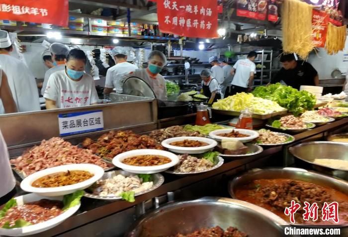 記者走訪徐州市區(qū)大街小巷發(fā)現(xiàn),各大餐館、飯店提前備足了貨源,店方更是拉起橫幅,布置花籃,紛紛推出特色伏羊菜品迎賓納客。11日中午,徐州七百歲羊肉館濱湖店店長(zhǎng)張輝介紹,飯店在伏羊節(jié)期間預(yù)計(jì)每天要用掉大概15只羊的鮮羊肉。店內(nèi)包間、大廳空桌早在一周前就被預(yù)訂滿。當(dāng)天一早,附近很多市民就帶著鍋碗來店里打羊肉湯。中午,由于吃伏羊的客人較多,一樓大廳的餐位已經(jīng)翻臺(tái)多次?!胺蚬?jié)第一天,單獨(dú)他們這一個(gè)店面最少接待顧客50桌近600人次。
