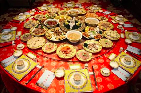 清真宴席全羊席是繼滿漢全席之后的宮廷大宴席之一,是清朝宮廷招待穆斯林客人的最高檔次宴席。全羊席是用整個羊的各個不同部位,烹制出各種不同品名、不同口味的菜肴。也就是說,從頭到尾,每一處都能做出一個菜。例如羊耳朵,可分上、中、下三段,三處可做出三樣不同的菜肴:羊耳尖可做“迎風(fēng)扇”,羊耳中段可做“雙風(fēng)翠”,羊耳根可做“龍門角”等等,品種五花八門,名稱各有千秋。而且從頭到尾,在所有的菜名中不露一個“羊”字,全以美麗、生動、形象的別名代之。全羊席的餐室很注重伊斯蘭特色,桌布要用藍色,還要用白布縫上“清真”二字。另外,清宮中的很多清真菜肴,現(xiàn)在仍為清真飯店保留,例如:桂花羊肉、蔥爆羊肉、芝麻里脊、炸牛排、鍋燒雞、鹽爆散丹等。還有一大批宮廷清真小吃在民間流傳,如涼糕、撒糕、切糕、甑兒糕、芙蓉糕、蜂糕等。
