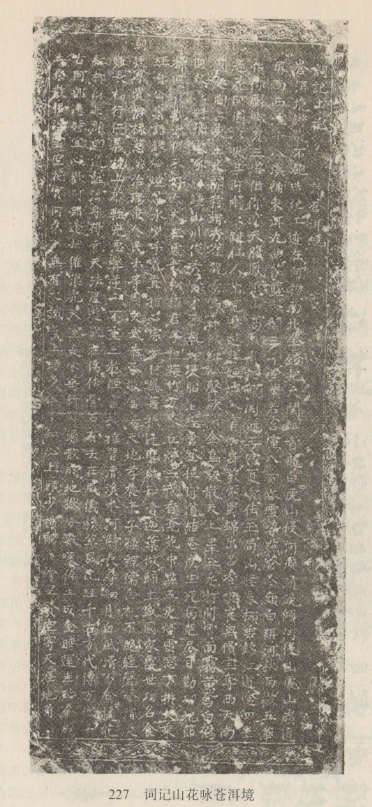 白文碑刻。明楊黼作。景泰元年(1450年)立,原嵌于大理縣作邑鄉(xiāng)慶洞莊圣元寺偏殿前廳北壁,后移至大理縣文化館。碑文14行,陰文正體,從右到左直行書寫。首行為題,其余正文,共13行,每行40字,只第9行41字,末行39字。全詩20節(jié),每兩節(jié)為一聯(lián),共10聯(lián)。前4聯(lián)詠蒼山洱海的自然景色和地勢(shì)名勝,后6聯(lián)抒作者之情感。以白語吟誦,優(yōu)美動(dòng)聽。這是目前保存最為完好的一塊白文碑。傅懋勣、肖雷南在40年代曾根據(jù)郭純?nèi)实淖x音注解此碑,有油印本。石鐘健、楊燦然、徐嘉瑞亦對(duì)此碑加以研究。1957年,徐琳、趙衍蓀以郭純?nèi)首x音為本,用國際音標(biāo)記音,并加翻譯。《民族語文》1 980年第3期載有釋讀文章。