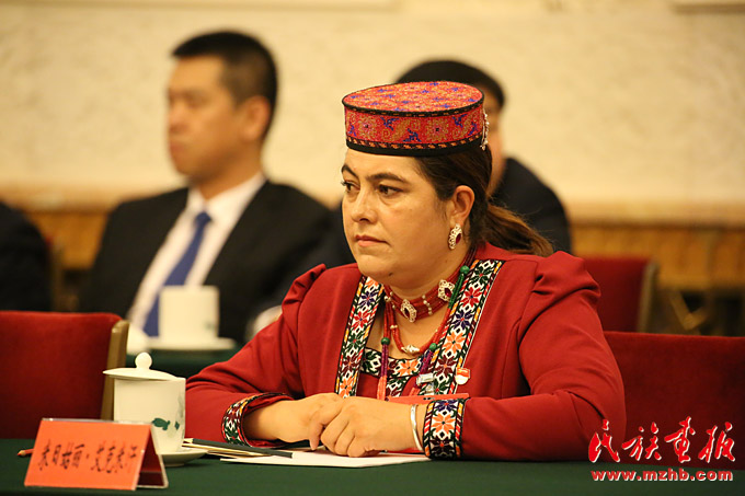 十九大代表、新疆塔什庫(kù)爾干塔吉克自治縣塔什庫(kù)爾干鄉(xiāng)小學(xué)黨支部書記米日姑麗·艾克米汗(塔吉克族)(滕俊攝影)