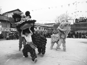舞獅吸引眾人圍觀,頗顯熱鬧