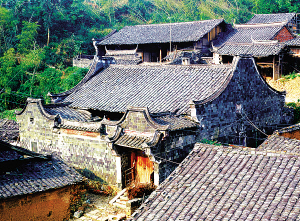 畬族主要聚居在浙江省和福建省山區(qū)的丘陵、山谷盆地。浙江景寧是我國唯一的畬族自治縣。畬族聚居的村寨都在離縣城不遠(yuǎn)的大山里,大都選擇避風(fēng)向陽、有水源的地方建房成村。在村寨四周栽種松樹、楓樹、榅樹、苦櫧,房前屋后種毛竹、果樹。村口有樹能擋風(fēng),屋后種樹能蓄水,空氣也格外新鮮,因此,便有了“造成風(fēng)水畫成龍”的畬族諺語。