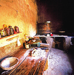 居室內(nèi)紅箱、畫柜耀人奪目,墻上掛有阿拉伯文字的對聯(lián)。屋檐下的臺階上,始終放著一個隨時洗手洗臉用的“湯瓶”,既節(jié)約又清潔。東西偏屋為晚輩居住,南邊為牲畜和草料房。東鄉(xiāng)人認(rèn)為家居四方平正,財源廣,子孫榮,門庭興旺。廚房是獨立的,砌鍋灶,有大案板,方便以面食為主的飲食習(xí)慣。