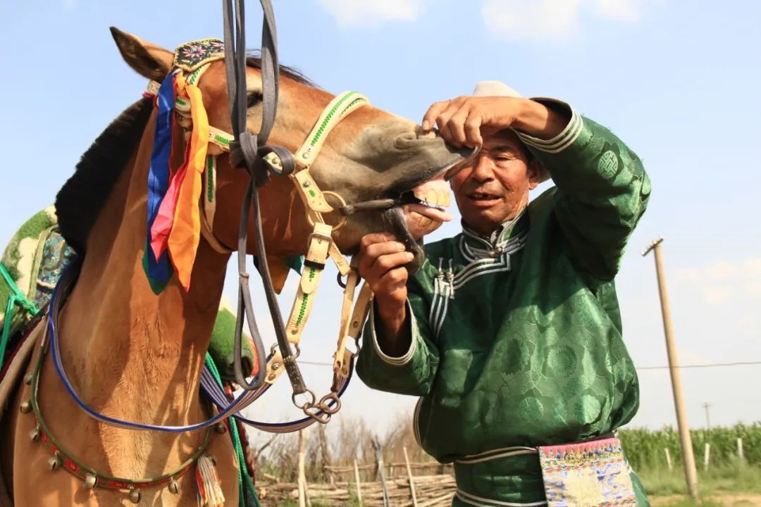 馬的交叉行走分為兩種。一般情況下,馬的右前腿和左后腿同時(shí)往前走,左前腿和右后腿并前行叫作“通西業(yè)”;左前腿和后腿并行或右前腿和后腿并行叫作“走馬式行走”。走馬分為賽布日吉擾、海日查格吉擾、德古日吉擾、塔拉吉擾、胡日頓吉擾等5種。小走是走馬中最簡(jiǎn)單的行走方式,不費(fèi)多大力氣。海日查格吉擾是在小走的基礎(chǔ)上稍微快一點(diǎn)兒的行走方式,這是馬天生的步式之一。德古日吉擾是在賽布日吉擾和海日查格吉擾的基礎(chǔ)上訓(xùn)練出來(lái)的走馬步式。把這種步式再加訓(xùn)練,比之前稍快,達(dá)到能進(jìn)入賽場(chǎng)的程度時(shí)就稱為塔拉吉擾。馬的塔拉吉擾還存在于訓(xùn)練階段,只有經(jīng)過(guò)進(jìn)一步的訓(xùn)練才能使馬的四肢之間的距離保持均衡,成為胡日頓吉擾(快走馬)。