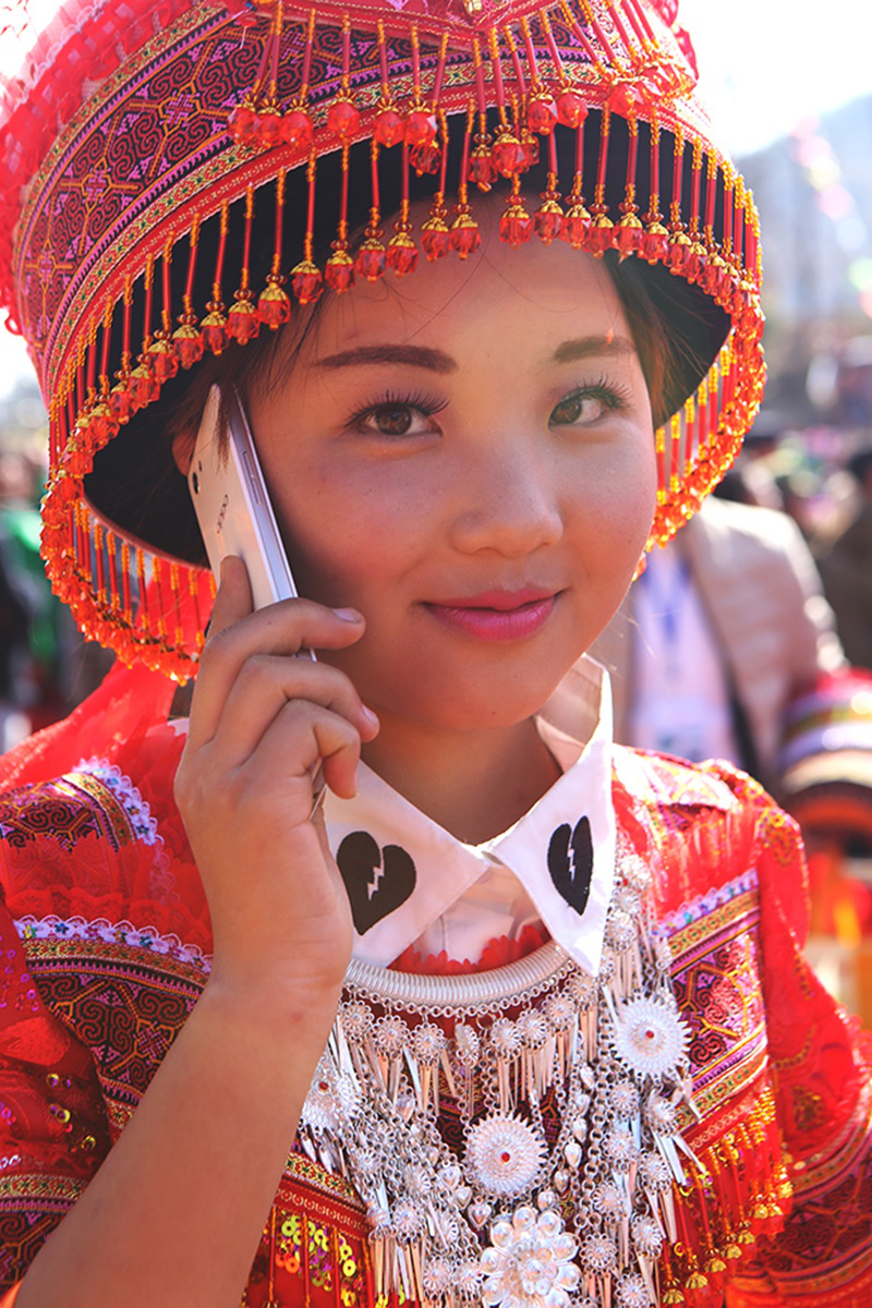 由于在歷史上經(jīng)歷長(zhǎng)時(shí)間、大范圍的遷徙,苗族文化形成了較強(qiáng)的環(huán)境適應(yīng)能力和流動(dòng)變遷特征。節(jié)日作為民族文化的凝集點(diǎn),慶祝方式和形態(tài)也處于動(dòng)態(tài)的演變和傳承之中。在大布紅的花山場(chǎng),一個(gè)從老撾過來的苗族女子樂隊(duì)讓當(dāng)?shù)氐拿缱迦烁械胶闷妗f著同樣的西部苗語,卻穿著略顯不同的衣服。她們排成一行,教人們一來一往地扔繡包,一時(shí)間圍觀者無數(shù)。不消多久,女子樂隊(duì)手中的CD就在人群中銷售一空。