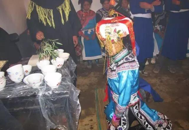 2、源自于民族歌舞文化習(xí)俗。彝族是個能歌善舞的民族,自古就有以歌作媒,用歌表達(dá)對異性的愛慕和追求的傳統(tǒng)。相傳,彝族先祖篤彌時,洪水淹沒了世界,而篤彌按照天神策舉祖的授意,躲進(jìn)自造的木桶中幸免于難,成了世間的獨(dú)人。天神為了不讓人種在世間滅絕,于是就安排天上三仙女尼友咪比、婁友咪多、吞友武吐下凡到人間,在唄谷懇嘎這地方設(shè)歌場,與篤彌唱歌又跳舞,談情又說愛。整個歌場上,熱鬧不一般:天上的仙女,成群來歌場;野人拿舞具,老虎打燈籠;人熊吹蘆笙,歡聚在歌場。彝族的先祖,就是通過歌舞迎得了仙女的歡欣的而成就婚姻而繁衍了彝人的。從此,彝族青年談情說愛、談婚論嫁,都離不開歌舞。歌舞逐漸地融入了婚禮場中,與婚禮上的各種儀式進(jìn)行對接和植入,通過上千年的發(fā)展,就形成了“阿買懇”。“阿買懇”中的“阿買”指未婚女子,“懇”有“歌舞”、“跳舞”之意。如“唄谷懇嘎”中的“懇嘎”就是歌舞場壩的意思;“懇合”(鈴鐺舞蹈)中的“懇”也有跳的意思;還有“懇咪”,指的是關(guān)于歌舞的詩文??梢?,“懇”(歌舞)的內(nèi)容是相當(dāng)豐富的,因而彝族出嫁時有出嫁歌,這完全是在情理之中的。