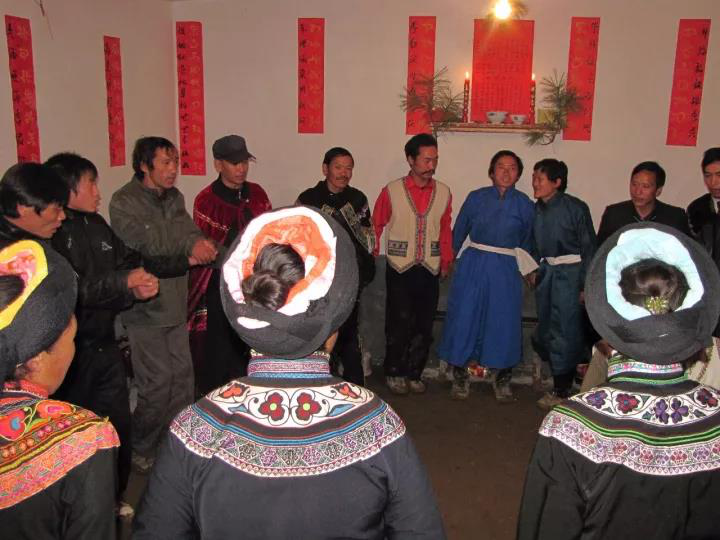 3、源自于宗法禮教。在阿買懇的唱詞中,有阿買懇是君長制定的規(guī)矩之說,根據(jù)彝族典籍文獻(xiàn)記載和民間傳說,反映古代彝族水西君長家和烏撒君長聯(lián)姻嫁娶時,都興阿買懇,說明阿買懇是君長興起這一說法是由根據(jù)的。彝族是一個很重視宗法禮教的民族,各種禮儀習(xí)俗和規(guī)章制度比較細(xì)密而嚴(yán)格,作為人生重大禮儀的婚儀,必然有許多規(guī)矩,阿買懇的幾十項(xiàng)程序性對答吟誦,就足以說明了這一點(diǎn)。但它也并非完全是“君長制定的規(guī)矩”,它更多的是百姓的禮俗和情趣,因?yàn)?,在阿買懇唱詞中反映的勞動場景的內(nèi)容很多。實(shí)事求是的講,阿買懇應(yīng)該是由君長所倡導(dǎo)和認(rèn)可,由廣大彝族民眾興起,經(jīng)布摩和民間歌師共同創(chuàng)作、經(jīng)民眾在演唱過程中反復(fù)修訂而形成的。