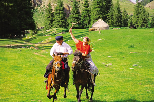 座談會結(jié)束后,大家又來到新地溝草原,舉行哈薩克族民間傳統(tǒng)體育活動,哈薩克族群眾紛紛參加姑娘追、摔跤、叼羊、賽馬等活動。一時間人聲鼎沸,歡歌笑語,草原上呈現(xiàn)出一片歡悅的景象。