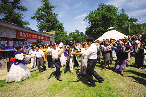 6月17日,在胡斯馬義·沙胡馬爾登陸南北極紀(jì)念碑揭牌儀式后,哈薩克族群眾自發(fā)地跳起了歡快的舞蹈,而后大家又歡聚在氈房中,暢談各民族團(tuán)結(jié)和發(fā)展的問題。
