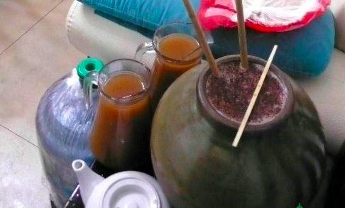 飲用時,將甕口打開,注入開水(冬季用溫開水,夏季用涼開水),然后插入竹管吮吸。竹管以水竹為佳,竹管的長短以甕壇的大小而定,無節(jié)者最佳;如果有節(jié),則事先打通。飲時,在場者沿酒甕圍坐一圈,由年長者最先飲,然后再由左而右,依次輪轉。酒汁吸完后可再沖入涼(溫)開水,直至淡而無味時為止。咂酒一經(jīng)開壇,剩酒無論濃淡,均不再飲用。