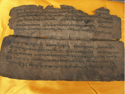 一般認(rèn)為普米族沒(méi)有本民族文字,但歷史上普米族曾使用過(guò)簡(jiǎn)單的圖畫(huà)文字,這是一種萌芽的原始刻畫(huà)文字,見(jiàn)于房屋壁畫(huà)、神龕、法器、房梁等地?,F(xiàn)學(xué)界說(shuō)的“韓規(guī)文”是以藏文字母為基礎(chǔ),用以記錄普米語(yǔ)的文字符號(hào)。韓規(guī)文主要用于抄寫(xiě)宗教祭祀經(jīng)文,認(rèn)知度不高,一般只有普米族的巫師“韓規(guī)”才能掌握使用(圖為韓規(guī)文經(jīng)書(shū)殘片,蒙哥提圖)。普米族現(xiàn)今有一套拼音文字,該套拼音文字以寧蒗彝族自治縣新?tīng)I(yíng)盤(pán)鄉(xiāng)牛窩子村的普米語(yǔ)為基礎(chǔ)音,在寧蒗普米傳統(tǒng)文化保護(hù)協(xié)會(huì)及香港大學(xué)丁思志教授的努力下,經(jīng)修訂的拼音文字最終面世,并且有了普米語(yǔ)教材。普米族拼音文字設(shè)計(jì)的構(gòu)想最早是在1995年由香港大學(xué)大學(xué)丁思志教授提出,同年,普米語(yǔ)聲母表首稿完成。該方案歷經(jīng)修改,最終的方案共收錄42個(gè)聲母,能夠滿(mǎn)足各地普米方言的使用需求。近年,丁思志教授又創(chuàng)制了一套有別于拼音文字的新創(chuàng)文字。新創(chuàng)文字是一種表意文字,該套文字以牛窩子普米語(yǔ)為基礎(chǔ)音,以漢字表意,輔之以自創(chuàng)的虛詞而成,從一定程度上超越了普米語(yǔ)言空間限制,解決了不同普米方言區(qū)因?yàn)榭谝舨町惗纬傻慕涣髡系K。