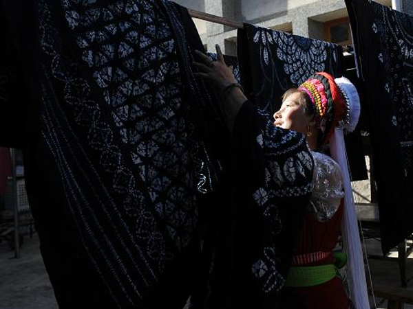 通過反復的浸染,每浸一次顏色就深一層,也就是所謂的“青出于藍”。浸染到一定程度后,取出晾干,拆去纈結,就有了藍底白花的圖案花紋了。制作好的扎染布圖案多以圓點,不規(guī)則圖形以及其他簡單的幾何圖形組成,頗具藝術效果,還可以根據(jù)各種圖案的扎染布制作衣裙、圍腰、床單、窗簾、桌椅罩等生活用品。2006年白族扎染技藝被國務院列入國家級非物質文化遺產(chǎn)。