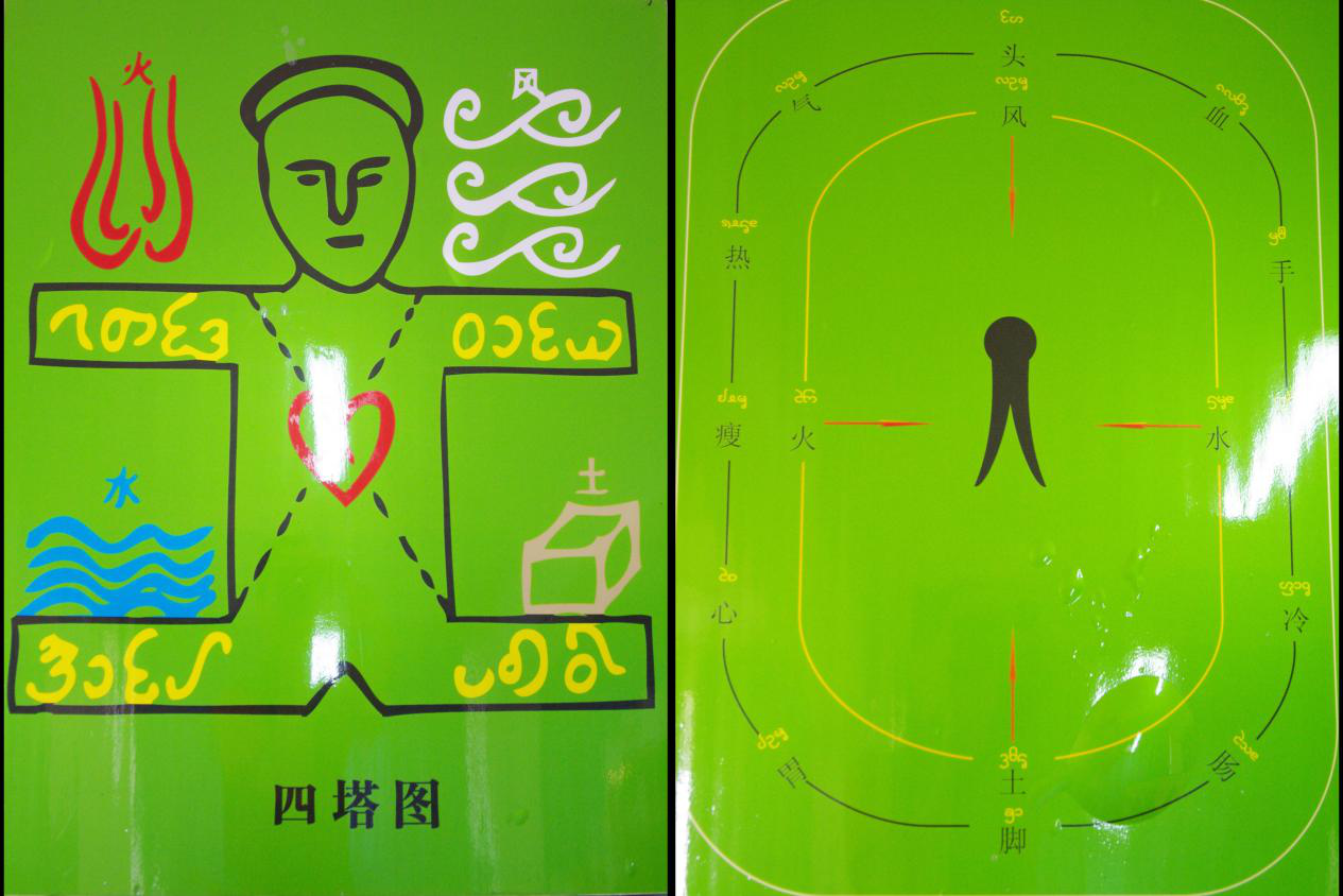 傣醫(yī)藥學(xué)的基礎(chǔ)理論包括塔都檔細(xì)(四塔理論:風(fēng)、火、水、土)、夯塔檔哈(五蘊(yùn)理論:色、識(shí)、受、想、行)、盤檔三(三盤理論)、特色雅解(解毒理論與解藥理論)、辨解帕雅攏(風(fēng)病論)等。