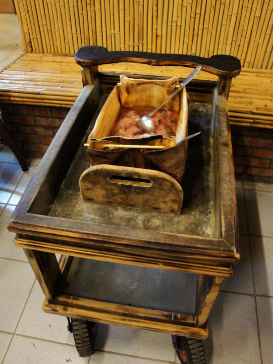 阿美人有一種美味的麥飯石火鍋,將燒得滾燙的麥飯石投入盛有魚、肉、菜等的竹筒或檳榔鞘殼中,利用石塊的溫度將食物燙熟后食用,味道鮮美且極富營養(yǎng),且阿美人會煎炒、油炸。