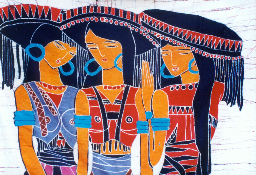 蠟染是貴州省丹寨縣、安順縣、織金縣苗族世代傳承的傳統(tǒng)技藝。 丹寨縣、安順縣及織金縣是以苗族為主體的多民族聚居區(qū),在長期與外界隔絕的艱苦環(huán)境中,這里的居民逐漸形成了自給自足的生活方式,古老的蠟染技藝因此得以保留下來。按苗族習俗,所有的女性都有義務傳承蠟染技藝,每位母親都必須教會自己的女兒制作蠟染。所以苗族女性自幼便學習這一技藝,她們自己栽靛植棉、紡紗織布、畫蠟挑秀、浸染剪裁,代代傳承。在此狀況下,這些苗族聚居區(qū)形成了以蠟染藝術為主導的衣飾裝束(以上三照片由劉軍提供)。