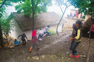 彝族人認(rèn)為,清水能驅(qū)惡除邪,送走妖魔,帶來幸福,因此接親、送親都要潑水。接親這一天,新娘的姐妹組織鄰近的婦女早做好了準(zhǔn)備,躲藏在房前屋后或墻里墻外,只等接親隊伍到來。當(dāng)接親隊伍東瞧瞧,西望望,小心謹(jǐn)慎地走進(jìn)女方家門時,一瓢瓢、一盆盆清水就會劈頭蓋臉地潑來。用水方便的地方,人們還直接接上水管射,令接親者防不勝防,一個個被淋成了“落湯雞”。他們有時也會趁人不備,搶過女方手中的水桶或水盆反擊。在一片歡鬧聲中,姑娘們不斷展開攻勢,越“戰(zhàn)”越猛,而接親的小伙子們則難以招架。