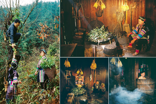 各地藥浴習(xí)俗不同,或每日洗浴,或擇吉日洗浴。由每戶最年長(zhǎng)的男性上山采來(lái)追風(fēng)藤、半邊楓、九龍盤(pán)、血藤等中草藥,洗凈,捆成把或切碎放入大鐵鍋中用水煮沸,待煮出藥汁后,撈去藥渣,把煮好的藥水放入專門藥浴的大桶——“龐桶”中。浴者赤身入桶,在保持適宜溫度(一般為38度左右)的藥液中浸泡20-30分鐘。鍋中有煮好的備用藥水,可保證每位藥浴者浴時(shí)的溫度相同。在藥浴中,通過(guò)浸泡,讓藥汁慢慢地滲入人體的毛細(xì)血管、遍及全身,達(dá)到以浴治病的目的?,幾逵盟幩瓷?,不分男女老幼,全家皆洗,一家人輪流洗,水臟了就換,冷了再加熱?,幾鍖鹘y(tǒng)禮儀規(guī)范滲透到藥浴治療當(dāng)中,規(guī)矩是:先客后主,先小后大,先老后少,先男后女。
