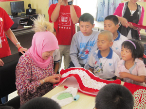 在民俗技藝的傳承方面,有條件的哈薩克族家庭能夠教孩子彈冬不拉,唱民歌,學習舞蹈和做手工藝。當?shù)貙W校也會在音樂、美術課上教授相關的技能。串珠刺繡是哈薩克族的傳統(tǒng)技藝,制作一幅完整的串珠刺繡作品需要很長時間,這就為技藝的傳承增加了難度。當?shù)睾芏喙_克族婦女都懂得這門技藝,但孩子們受到這方面的教育卻并不多。