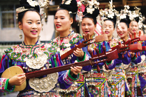 2015年6月13日是我國第十個“文化遺產(chǎn)日”,當天,許多民族地區(qū)都開展了相關活動,展示“非遺”項目的保護成果。在貴州省黎平縣,當?shù)囟弊迦罕妳R聚在縣城,開展演侗戲、唱侗族大歌、跳侗族蘆笙舞等展演活動,自信展示侗族“非遺”文化魅力。