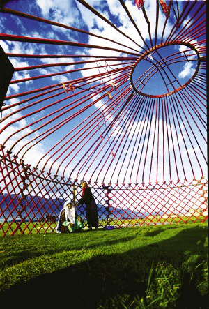 逐豐美牧草而居,是哈薩克牧民每年要做的功課。搭好帳篷架子,坐下來(lái)喘口氣,天好藍(lán),這里就是他們這一季的家了