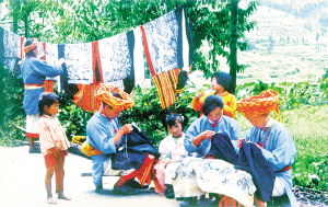 季節(jié)在閑著,整個(gè)寨子卻在忙。漢子們隨意兜幾個(gè)煨熟的紅薯,就出門挖山土、砍柴火去了。女人們則湊到一起說著、笑著或哼著,專心做起她們心愛的挑花活計(jì)來。吊腳樓、屋檐下、火塘邊、堂屋里、巖石上、小溪旁,到處都散落著三三兩兩挑繡花裙的姑娘。提起挑花,姑娘們可就來神了,個(gè)個(gè)都有一手好絕活,誰都可以說出好幾個(gè)道道來。她們從六七歲時(shí)起,就要在娘手把手的嚴(yán)格規(guī)訓(xùn)下,穿針引線,學(xué)著挑花。年復(fù)一年,傾其心智,從不間斷,直到終老。