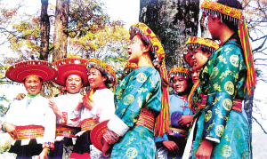 這是一個(gè)特別愛美的民族。男人們著裝瀟灑隨意,頭纏黑白相間的方格頭帕,倍顯英俊。女人們則身穿黛藍(lán)色對(duì)襟長(zhǎng)衫,鑲著的紅布邊和紅布扣純?yōu)檠b飾。下著素艷相融的花裹裙,腰纏五顏六色的腰帶,頭上再配一個(gè)后面吊有長(zhǎng)長(zhǎng)彩須、狀似倒扣斗篷的火紅頭巾,把個(gè)茫茫綠野點(diǎn)綴得山花爛漫、如畫如詩。