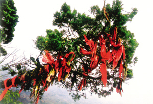 花瑤同胞祖祖輩輩與寨子里的古樹久久相依。在他們心中,有著頑強(qiáng)生命力的老樹飽吸天地之靈氣,百年不腐,千年不朽,早已是神,時(shí)時(shí)都在庇佑他們。故對(duì)之倍加敬仰,又十分親近,誰都不會(huì)貿(mào)然去傷害它們。即便是蟲蛀樹空枯朽倒地,也不敢拖回家用,而是讓其自生自滅,還原于土。