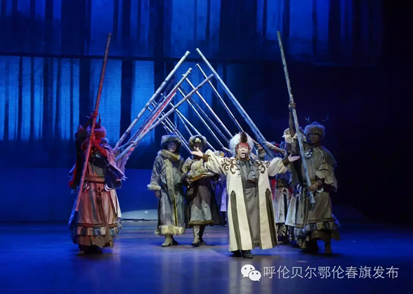 《勇敢的鄂倫春》,由烏蘭托嘎?lián)嗡囆g(shù)總監(jiān),塞納為編劇,三虎、丹德爾(俄羅斯)、吳莽三人出任總導(dǎo)演;全體演職人員63人,由鄂倫春自治旗烏蘭牧騎專業(yè)人員和15名群眾演員組成,其中鄂倫春族藝術(shù)家曲云、白娟為國(guó)家一級(jí)演員,鄂倫春族群眾演員來(lái)自獵民村與相關(guān)城鎮(zhèn),演員隊(duì)伍中年齡最大的71歲,最小的7歲。演出團(tuán)隊(duì)中鄂倫春族演員占到了接近一半?!队赂业亩鮽惔骸芬远鮽惔好褡濯?dú)有的狩獵文化為主線,詩(shī)意地講述了狩獵生活的全過程,生動(dòng)鮮活地展示了鄂倫春民族勇敢、細(xì)膩的民族精神和性格特征。該劇還采用了高于原生態(tài)表現(xiàn)手段的唯美手法,將古樸的民族傳統(tǒng)文化與現(xiàn)代藝術(shù)元素巧妙地結(jié)合在一起,既尊重了民風(fēng)民俗,又符合當(dāng)代人的欣賞趨向,煥發(fā)著動(dòng)人心魂的強(qiáng)大魅力。