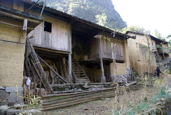 干欄石屋(亦稱干欄石樓)為進入20世紀后多數(shù)農(nóng)民的住屋,是凹形矮腳石木結構干欄式,因墻基用石頭砌成而得名。上層住人,下層圈養(yǎng)牲畜及堆放農(nóng)具和柴草,可以防潮。整棟房為石基、泥墻、木柱、瓦頂。每棟以用銜條數(shù)和間數(shù)多少區(qū)別大小。從屋頂?shù)轿蓍軆蛇?,?3根銜條的叫檐十三,用15根的叫檐十五,以此類推。檐十三屋內較窄,不便擺放家具雜物;檐十九較寬敞,但屋檐低矮,室內陰暗。以檐十七居多,屋里寬敞,通風采光也良好。多為三、五、七、九間,大門居中,兩邊對稱。
