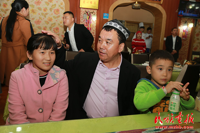 鄭州市二七區(qū)新疆美食城店主阿地力·買買提熱心公益事業(yè),他已承諾幫助漢族學(xué)生徐文婷11歲(左) 等5人直到大學(xué)畢業(yè)