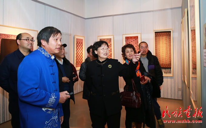 座談會(huì)上,中國(guó)民族博物館副館長(zhǎng)張志文介紹說(shuō):土家族是一個(gè)古老的民族,有著4000多年的文明發(fā)展史。土家族在全國(guó)有2個(gè)自治州、8個(gè)自治縣,人口達(dá)835萬(wàn)。土家織錦從秦漢時(shí)期萌芽,歷經(jīng)賨布、溪布、斑布、土錦等幾個(gè)發(fā)展階段,在明、清時(shí)期開(kāi)始定型,至今已有2000余年的燦爛歷史。中紀(jì)委駐財(cái)政部紀(jì)檢組原組長(zhǎng)、全國(guó)婦女手工編織協(xié)會(huì)副會(huì)長(zhǎng)賀邦靖說(shuō):土家織錦是土家婦女智慧的結(jié)晶,是武陵山區(qū)文化精準(zhǔn)扶貧的重點(diǎn)項(xiàng)目之一。從這個(gè)展覽上我們不僅可以看到土家織錦的燦爛與美麗,還可以看到國(guó)家實(shí)施文化精準(zhǔn)扶貧的實(shí)效。