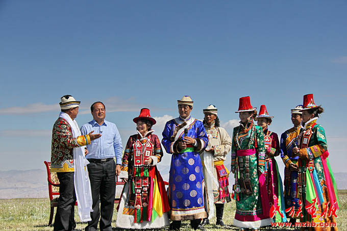 在 CCTV《相約》欄目錄制現(xiàn)場(chǎng),裕固族人民向全國(guó)觀(guān)眾介紹肅南縣及裕固族文化(肅南裕固族自治縣縣委宣傳部 供圖)