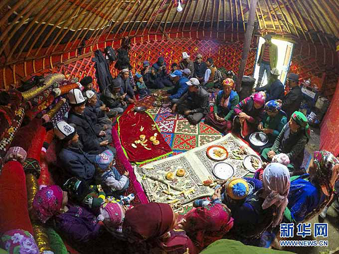 在“鐵日孜窩孜”夏牧場,喀拉塔什其木干村的村民們聚在一起分享美食