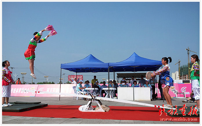 跳板是吉林省延吉市朝陽(yáng)川鎮(zhèn)朝陽(yáng)川小學(xué)的特色體育項(xiàng)目(民族畫(huà)報(bào)實(shí)習(xí)記者 董梅 攝影)