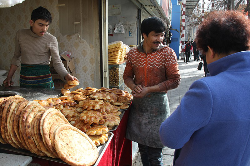 蘭州市橋門社區(qū)外馬路邊上的“新疆特色馕”小店
